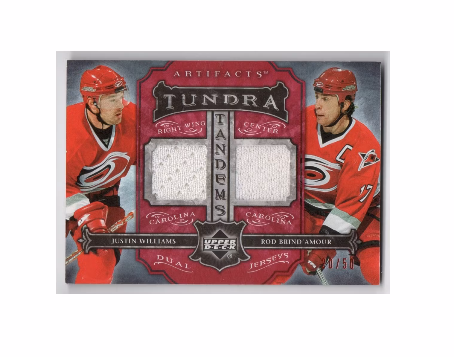 2006-07 Artifacts Tundra Tandems Red #TTWB Justin Williams Rod Brind'Amour (50-X117-HURRICANES)