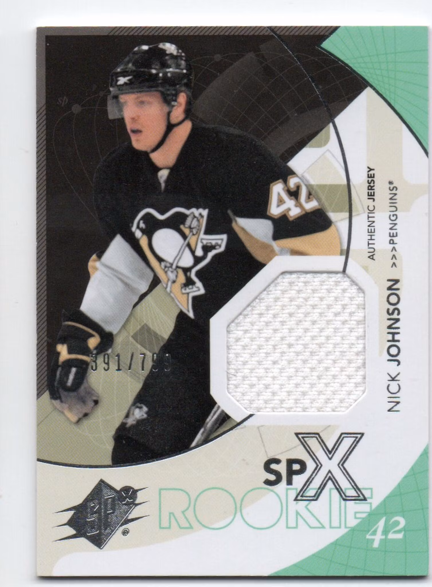 2010-11 SPx #164 Nick Johnson JSY RC (40-158x7-PENGUINS)