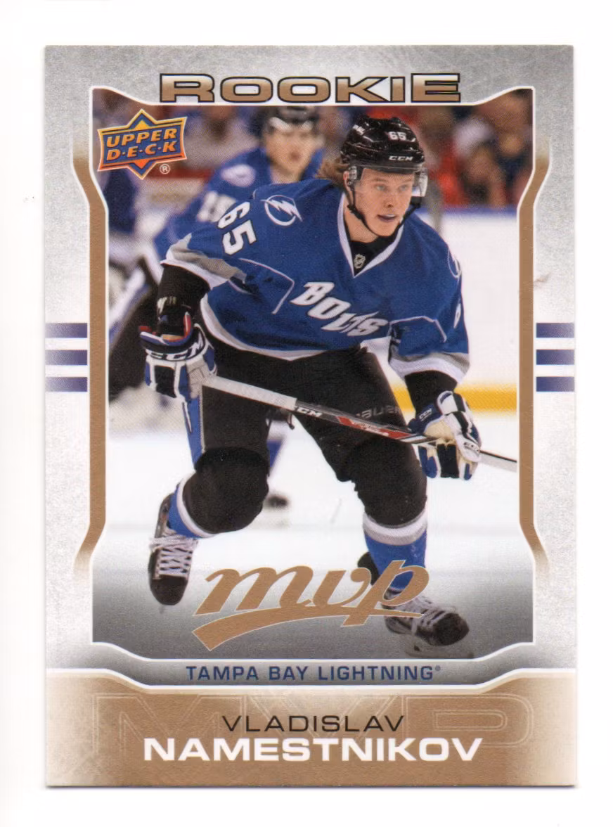 2014-15 Upper Deck MVP #51 Vladislav Namestnikov RC (10-182x8-LIGHTNING) $1.11 In stock Add to cart Stock: 1 Article Number: 22359 Share