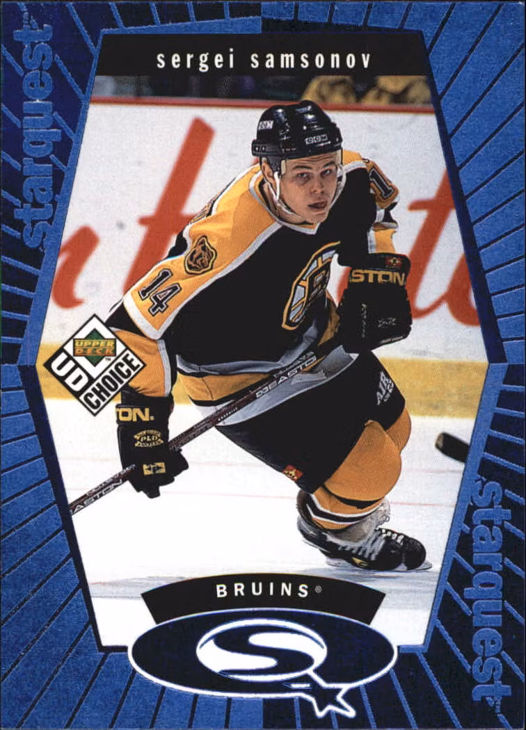 1998-99 UD Choice StarQuest Blue #SQ6 Sergei Samsonov (10-T13-BRUINS) 10 kr In stock Add to cart Stock: 1 Article Number: 30007 Share