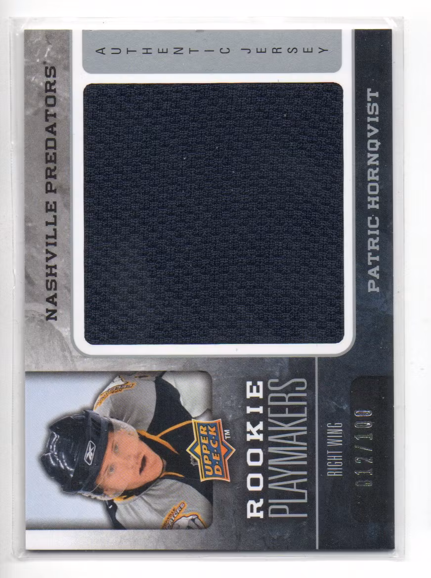 2008-09 Upper Deck Rookie Playmakers #RPPH Patric Hornqvist (60-Q5-PREDATORS) 60 kr In stock Add to cart Stock: 1 Article Number: 28212 Share