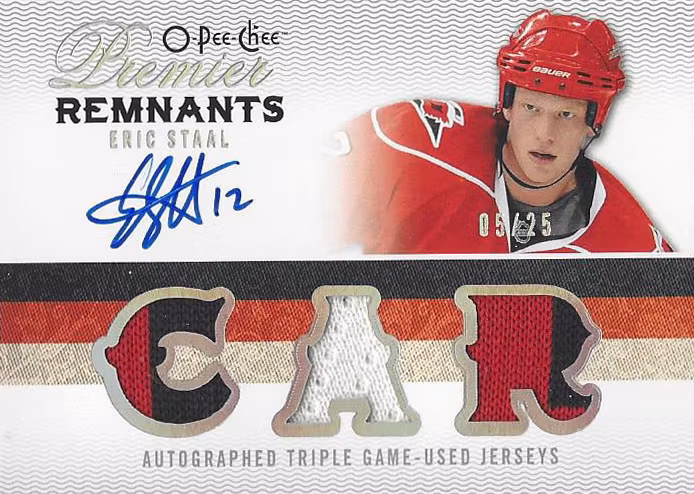 2009-10 OPC Premier Remnants Triple Autographs #AR3ES Eric Staal (400-T4-HURRICANES) 37,99 € In stock Add to cart Stock: 1 Article Number: 29540 Share