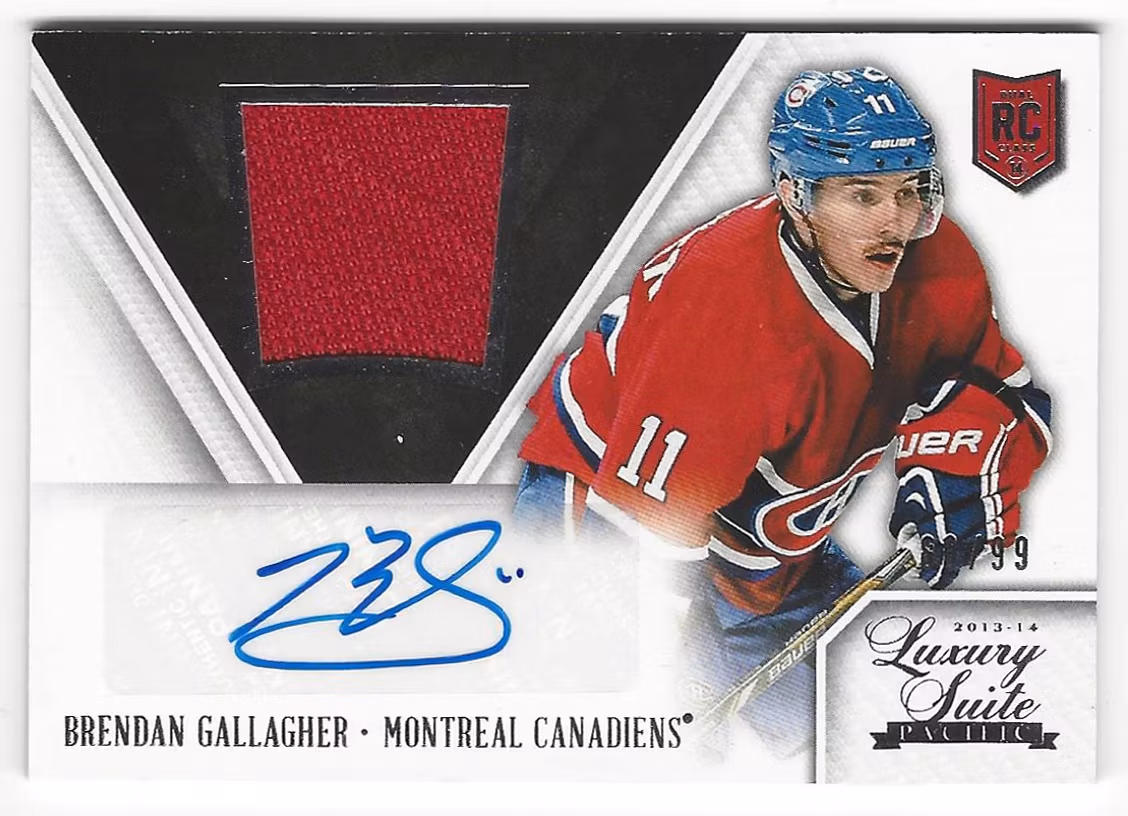 2013-14 Luxury Suite #166 Brendan Gallagher JSY AU RC (400-T5-CANADIENS)