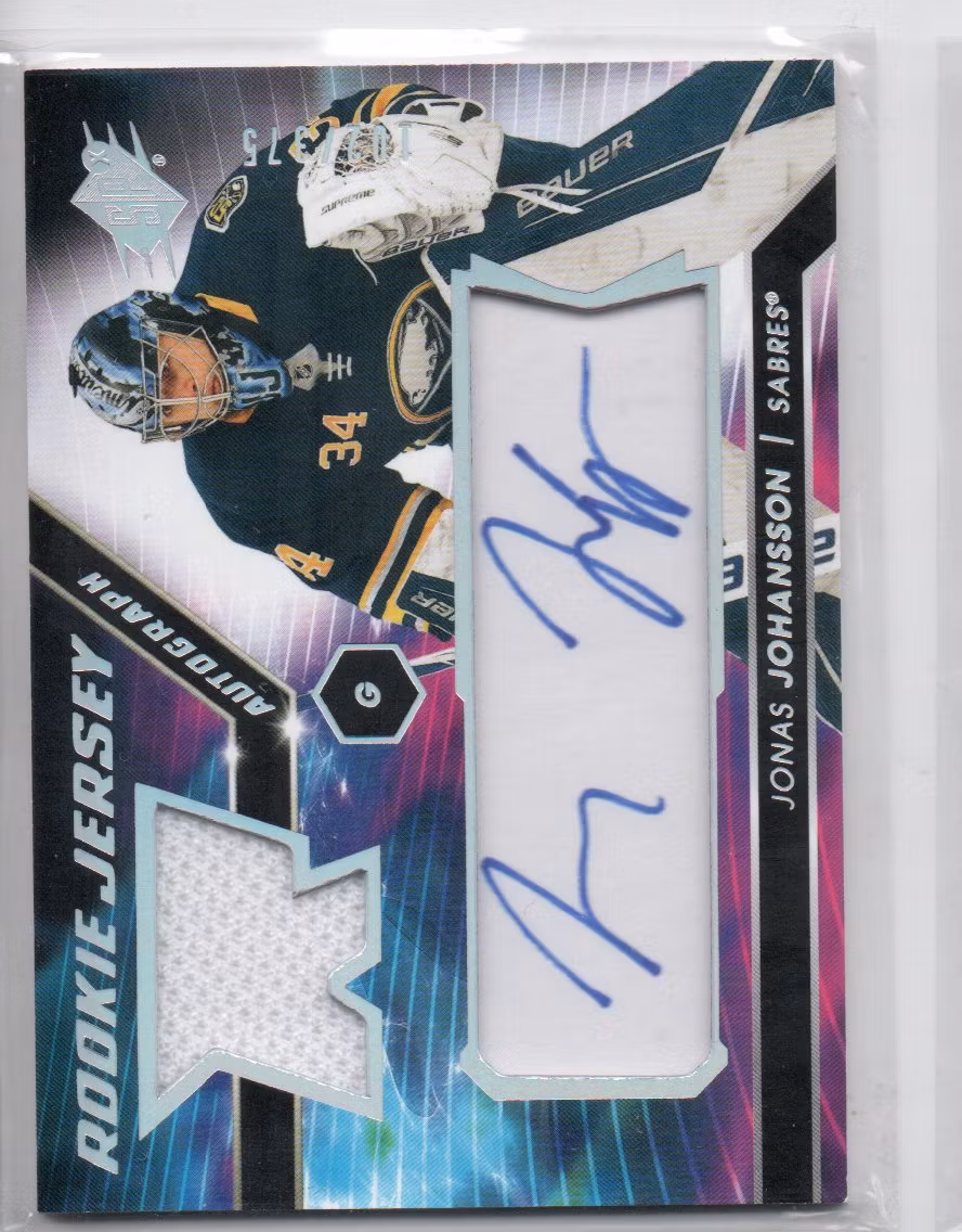 2020-21 SPx Rookie Jersey Autographs #JJ Jonas Johansson (100-C9-SABRES) 100 kr In stock Add to cart Stock: 1 Article Number: 27404 Share
