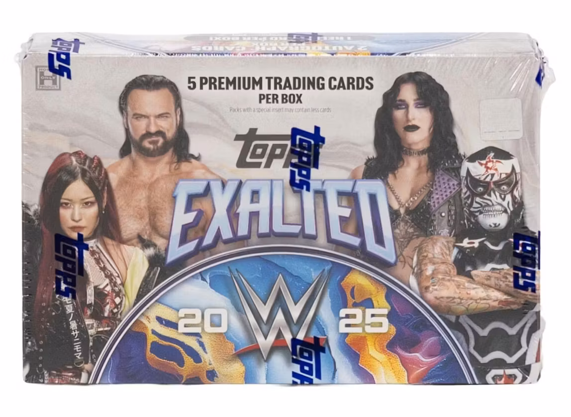 Topps Exalted WWE is making its debut in this hobby-exclusive release. Loaded with a variety of relics and autographs, Exalted is ready to hit the hobby by storm. Featuring today's Superstars, tomorrow's standouts, and the biggest Legends, there's something for every WWE collector. Look for The Last Time Is Now relics featuring relic pieces from John Cena's final year!