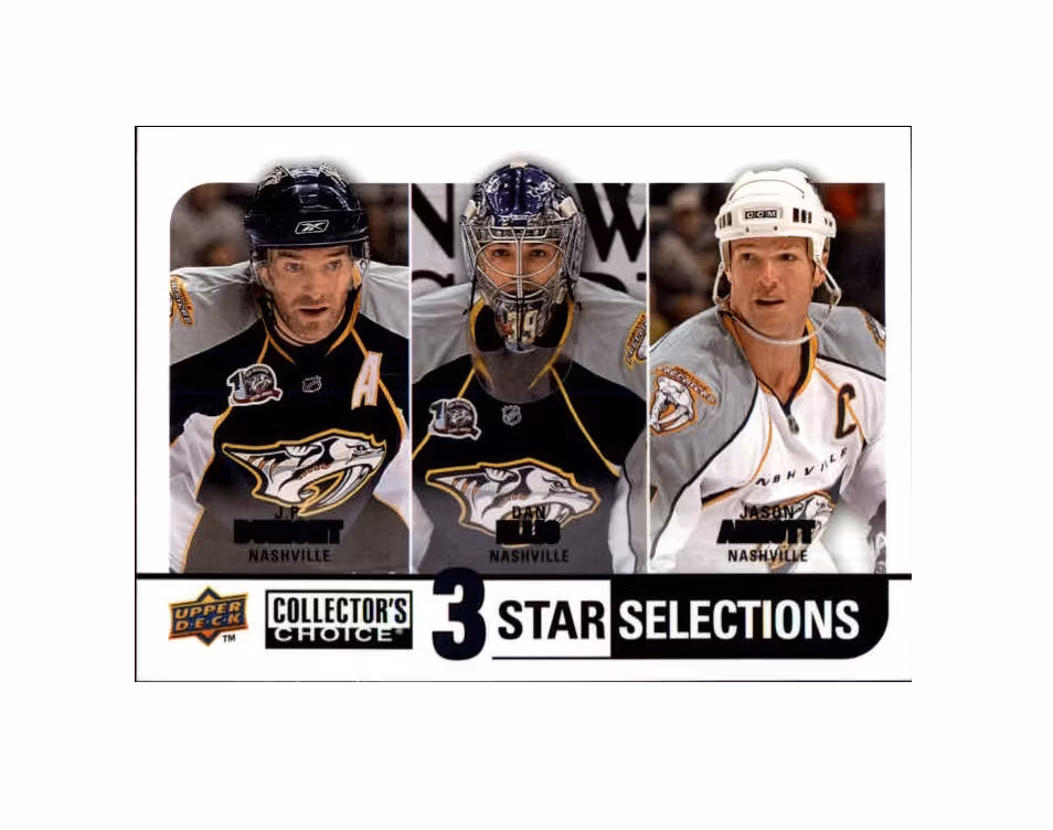 2008-09 Collector's Choice #267 J.P. Dumont Dan Ellis Jason Arnott (10-X172-PREDATORS) $1.11 Köpbar produkt Lägg i korgen Lagersaldo: 1 Artikelnummer: 10554 Dela