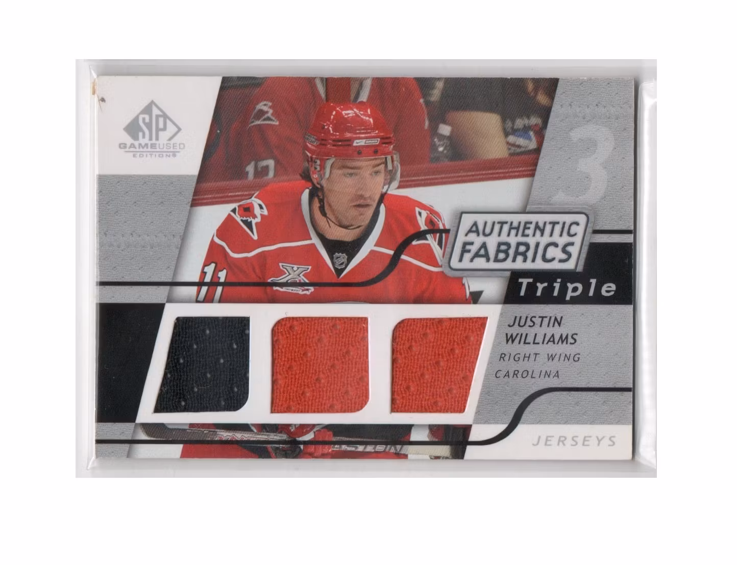 2008-09 SP Game Used Triple Authentic Fabrics #3AFJW Justin Williams (40-X251-HURRICANES) 40 kr Köpbar produkt Lägg i korgen Lagersaldo: 1 Artikelnummer: 10685 Dela