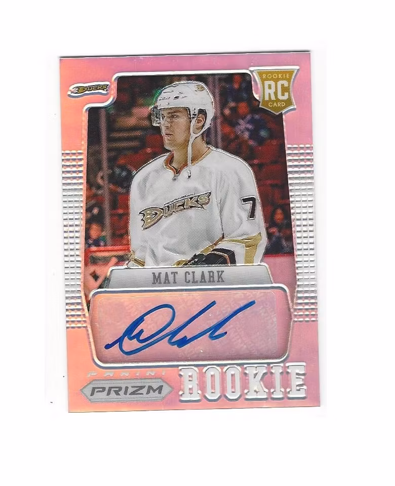 2012-13 Panini Prizm Autographs #53 Mat Clark (40-X120-DUCKS) 40 kr Köpbar produkt Lägg i korgen Lagersaldo: 1 Artikelnummer: 12971 Dela