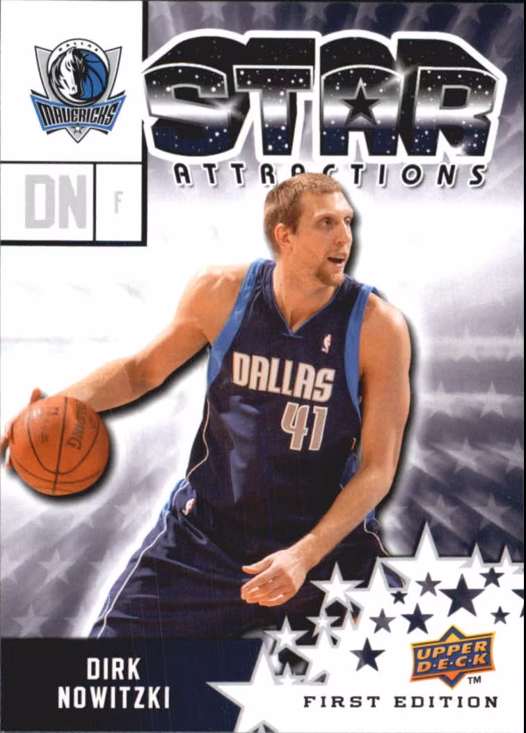 2009-10 Upper Deck First Edition Star Attractions #SA13 Dirk Nowitzki (20-SS5-NBAMAVERICKS) 20 kr Köpbar produkt Lägg i korgen Lagersaldo: 1 Artikelnummer: 54285 Dela