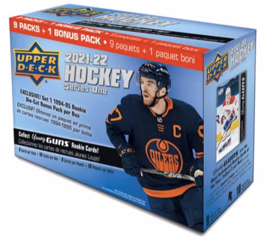 • Includes 9 packs of 2021 – 22 hockey cards plus one 1994-95 Rookie bonus pack